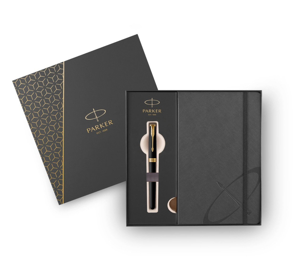 Набор Parker Sonnet Black GT (ручка роллер + блокнот) от официального дилера Parker в Курске. Вы можете дополнительно заказать гравировку, которая подчеркнет Вашу оригинальность и придаст памятность статусному подарку. Все ручки Паркер поставляются в фирменном футляре.