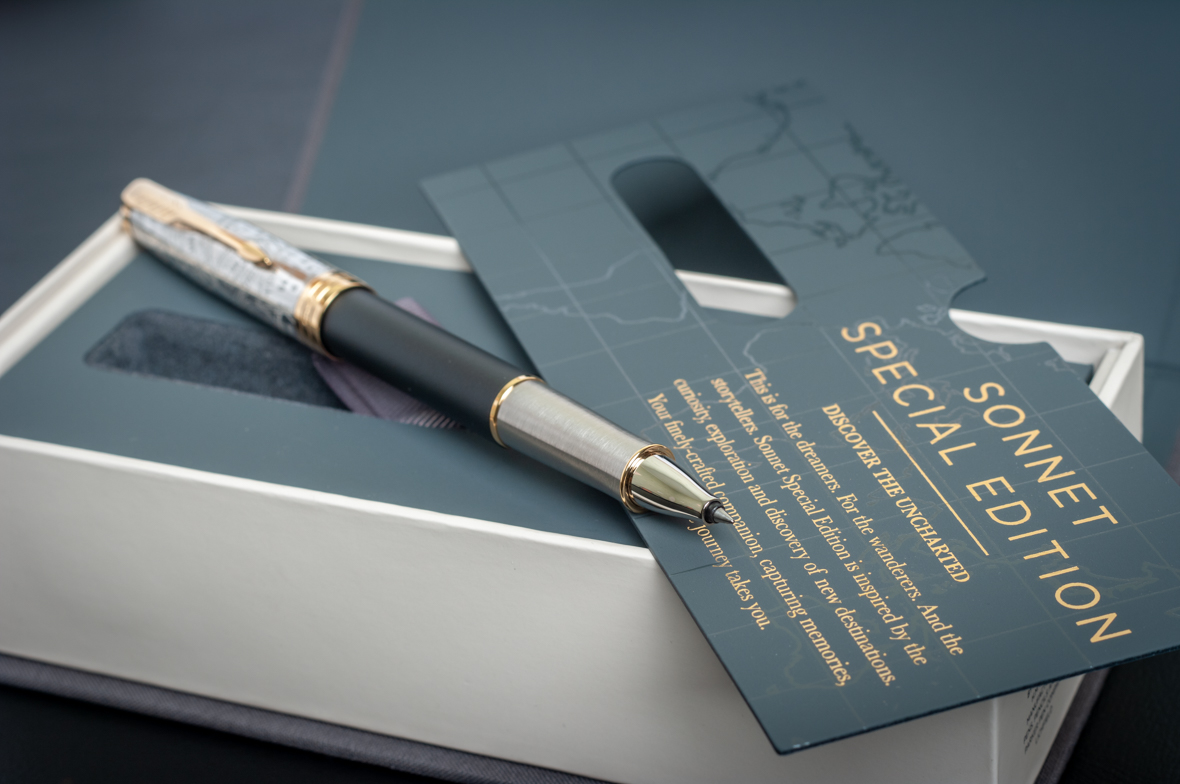 Ручка роллер Parker Sonnet Special Edition 2018 Impression Matte Black GT от официального дилера Parker в Курске. Вы можете дополнительно заказать гравировку, которая подчеркнет Вашу оригинальность и придаст памятность статусному подарку. Все ручки Паркер поставляются в фирменном футляре.