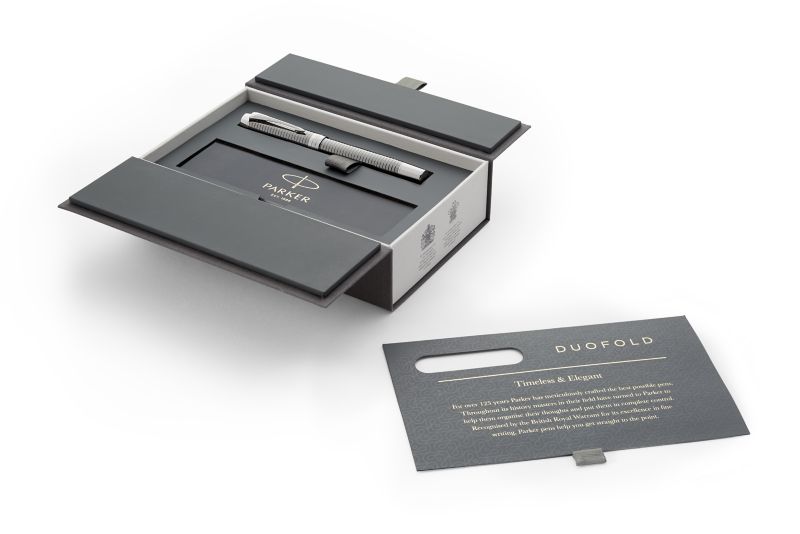 Ручка роллер Parker Duofold Prestige Ruthenium Chiselled CT от официального дилера Parker в Курске. Вы можете дополнительно заказать гравировку, которая подчеркнет Вашу оригинальность и придаст памятность статусному подарку. Все ручки Паркер поставляются в фирменном футляре.