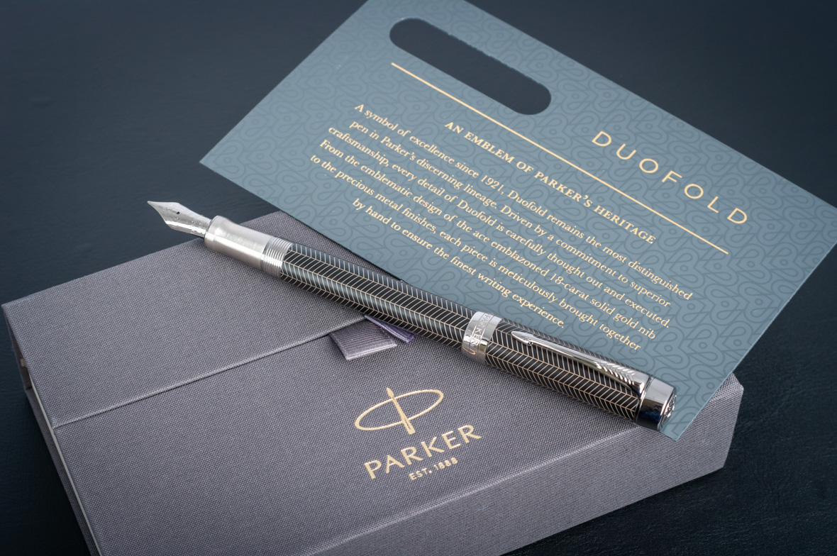 Перьевая ручка Parker Duofold Prestige Centennial Black Chevron CT от официального дилера Parker в Курске. Вы можете дополнительно заказать гравировку, которая подчеркнет Вашу оригинальность и придаст памятность статусному подарку. Все ручки Паркер поставляются в фирменном футляре.