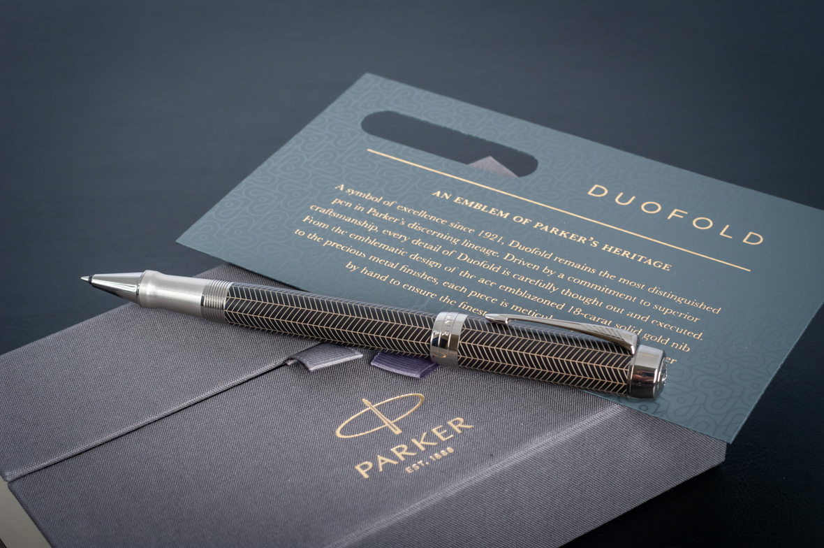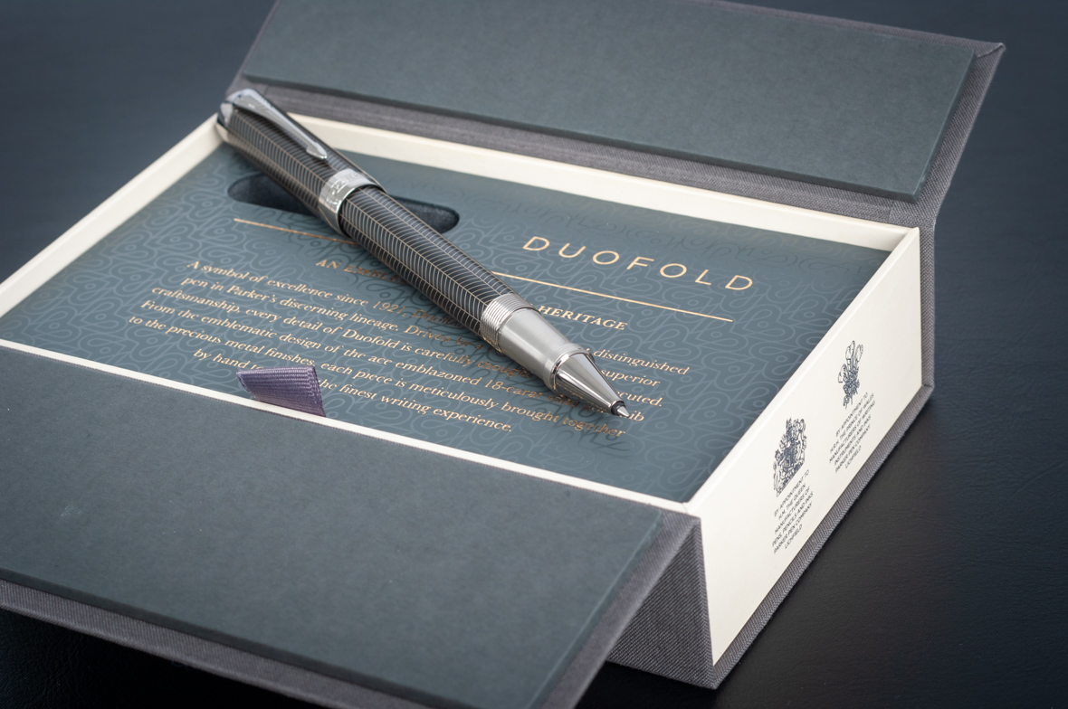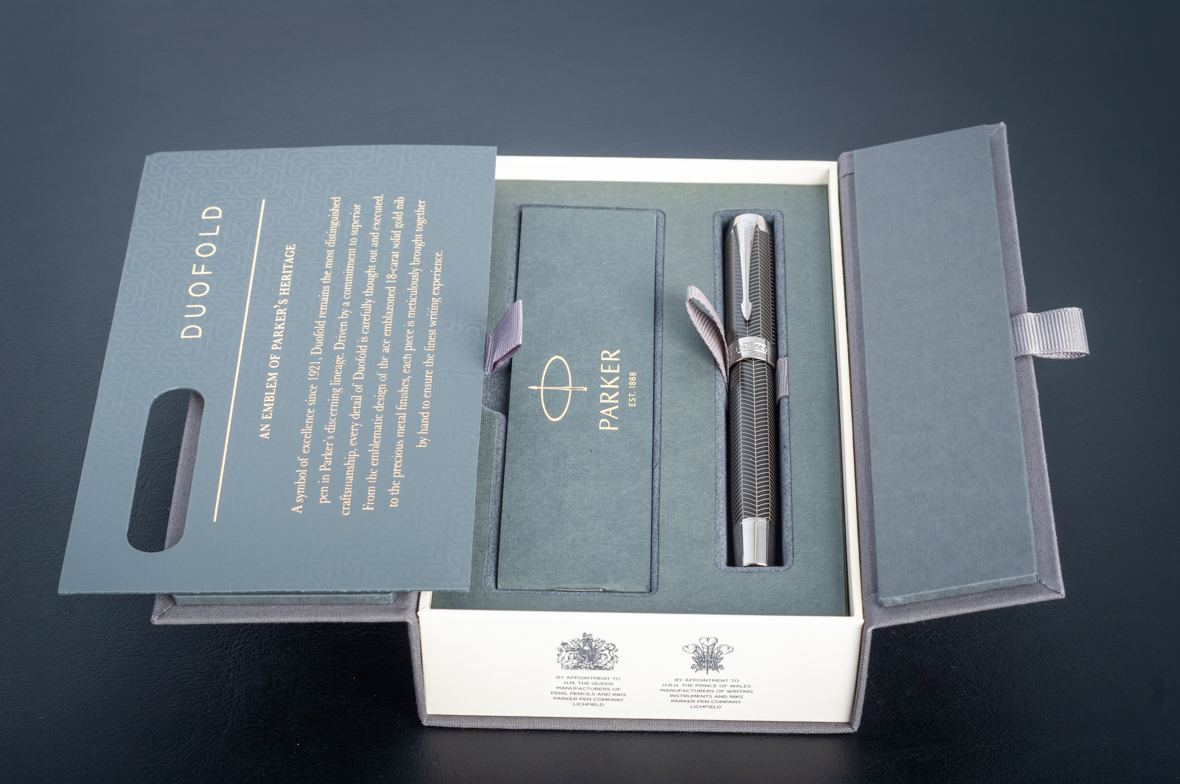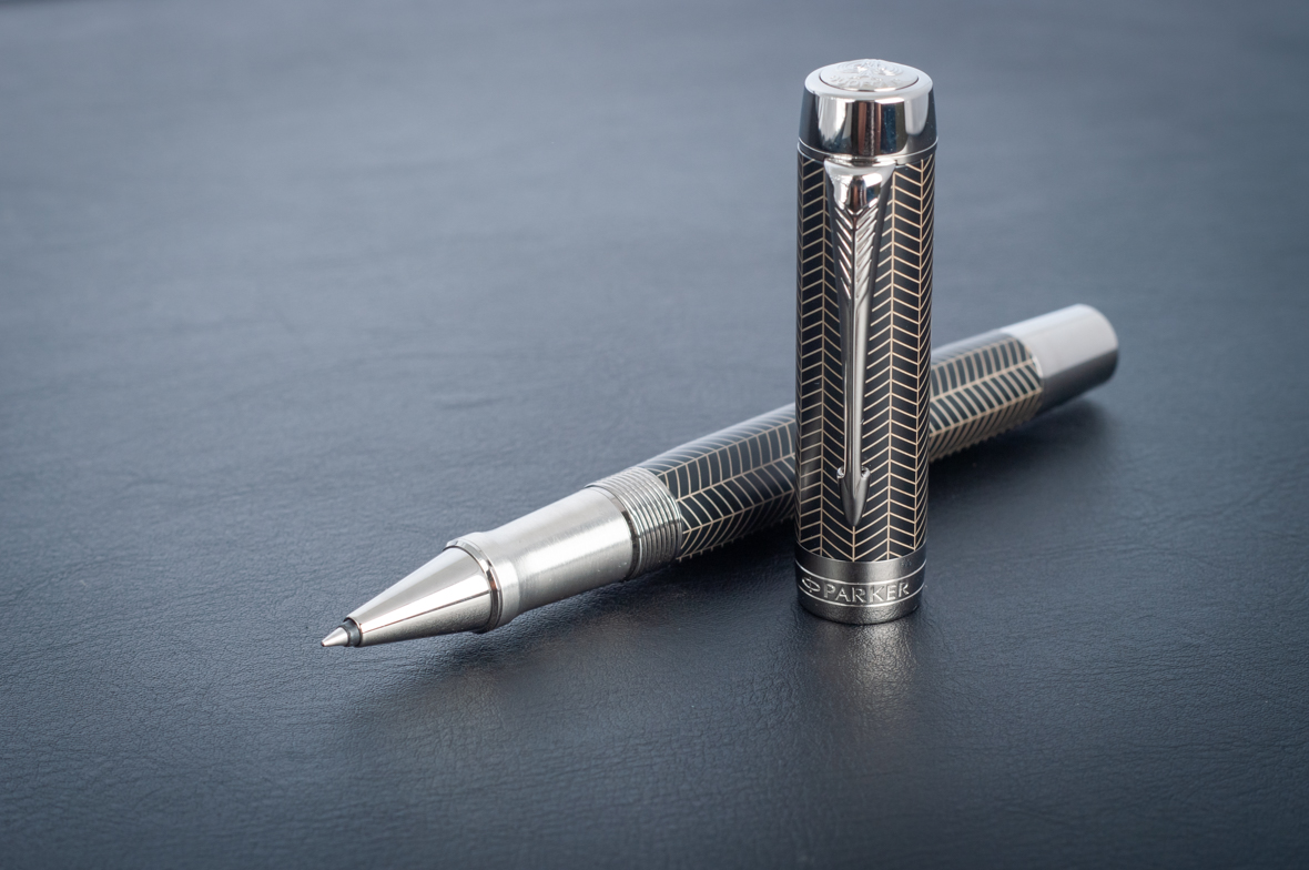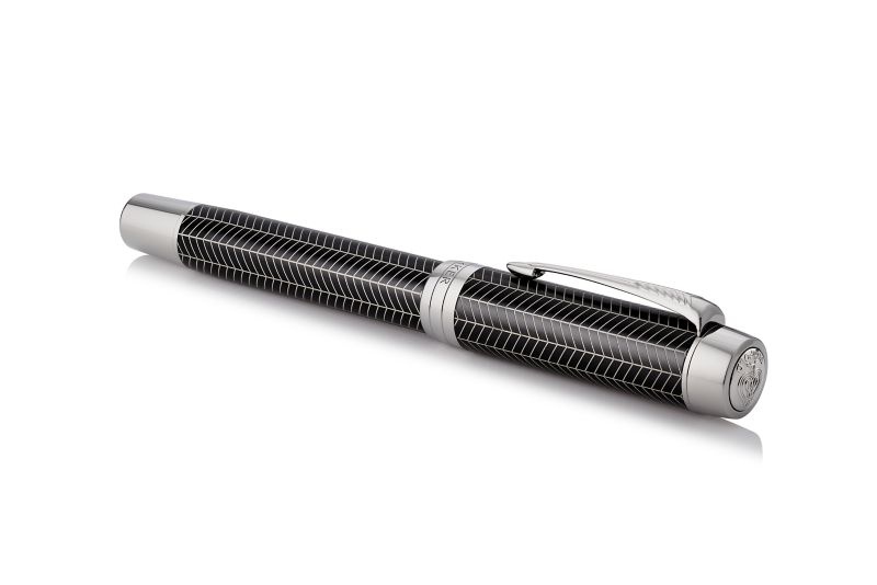 Ручка роллер Parker Duofold Prestige Centennial Black Chevron CT от официального дилера Parker в Курске. Вы можете дополнительно заказать гравировку, которая подчеркнет Вашу оригинальность и придаст памятность статусному подарку. Все ручки Паркер поставляются в фирменном футляре.