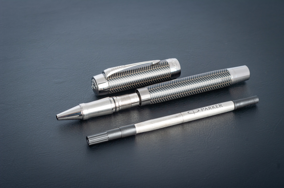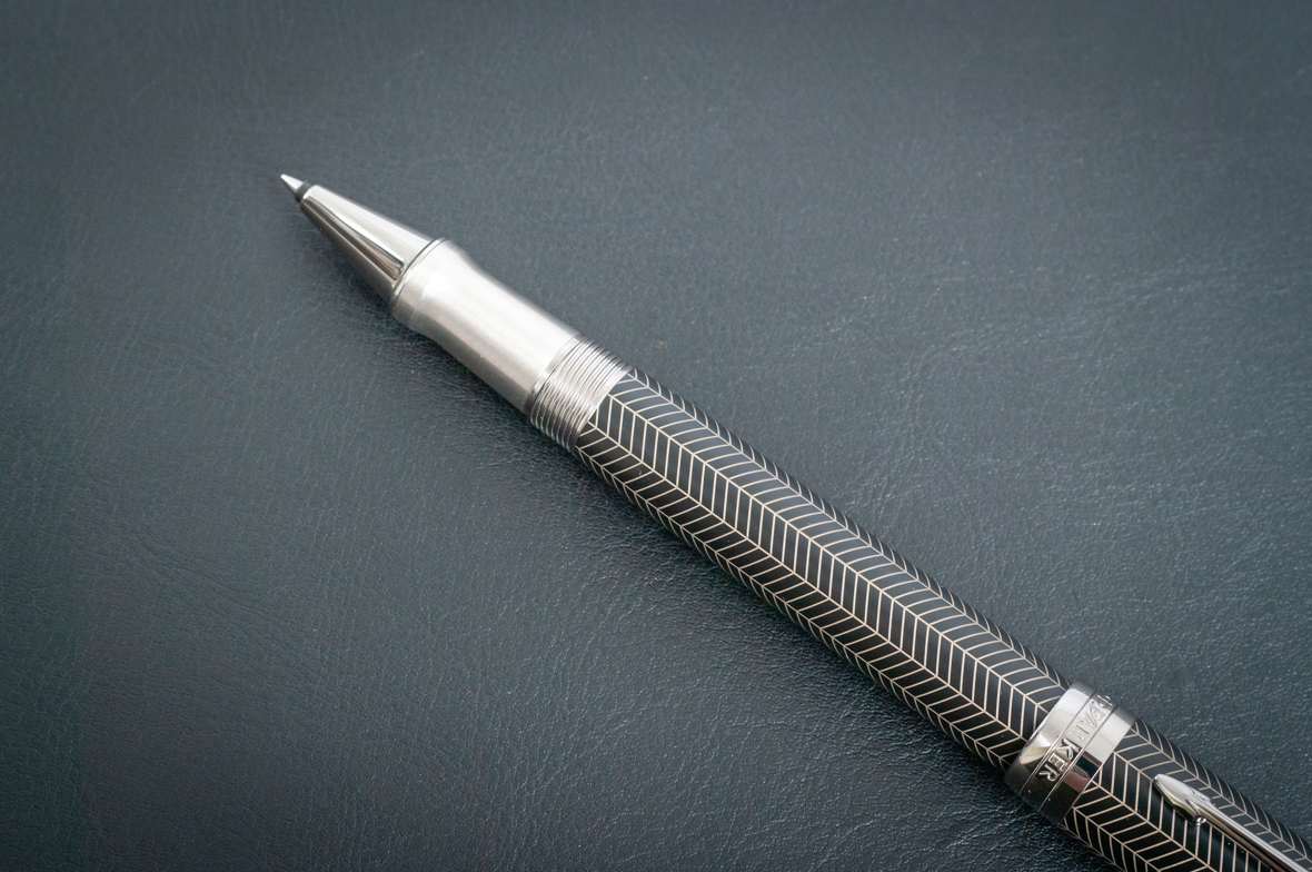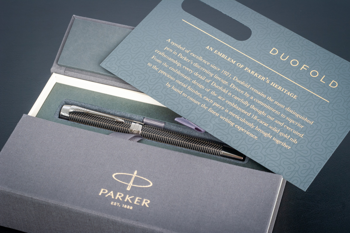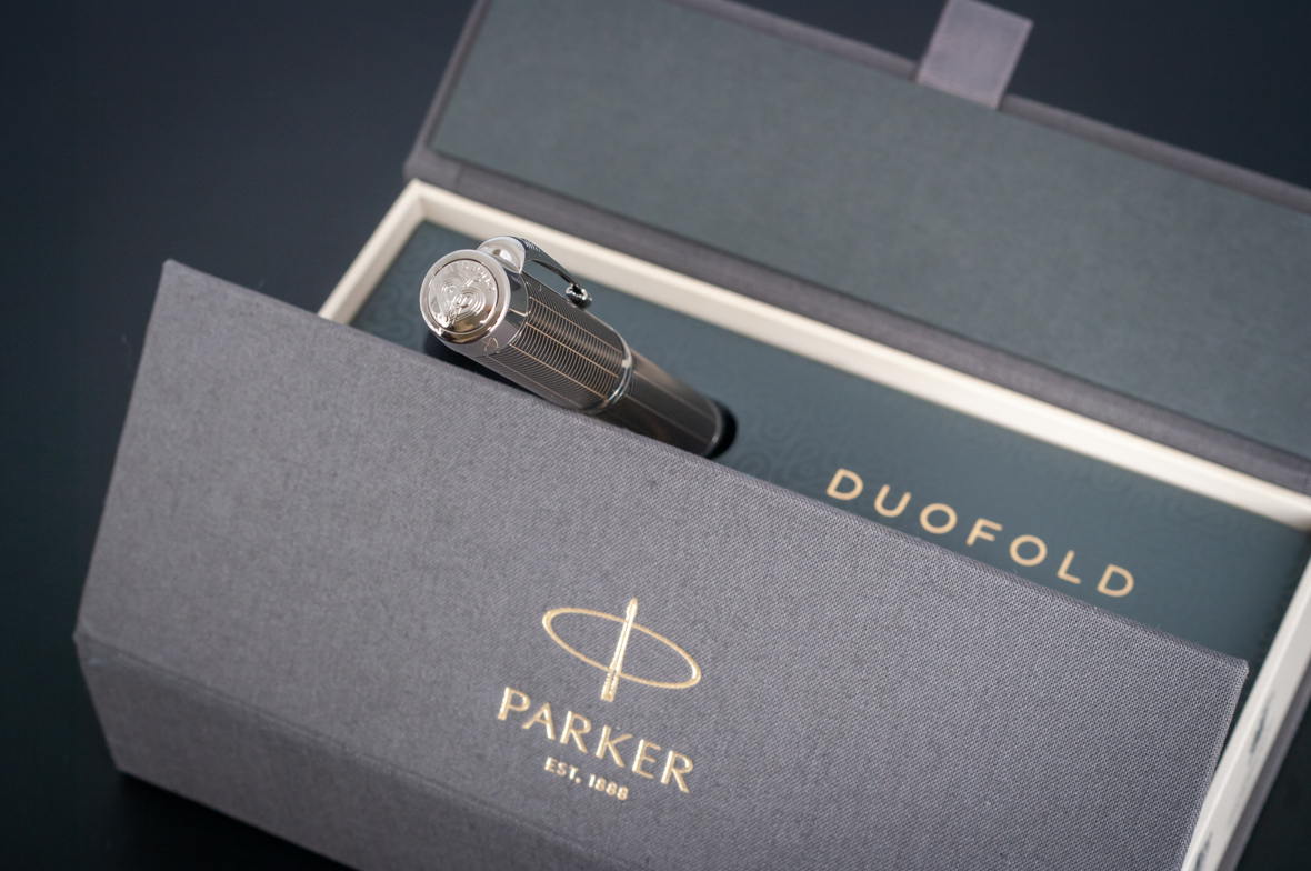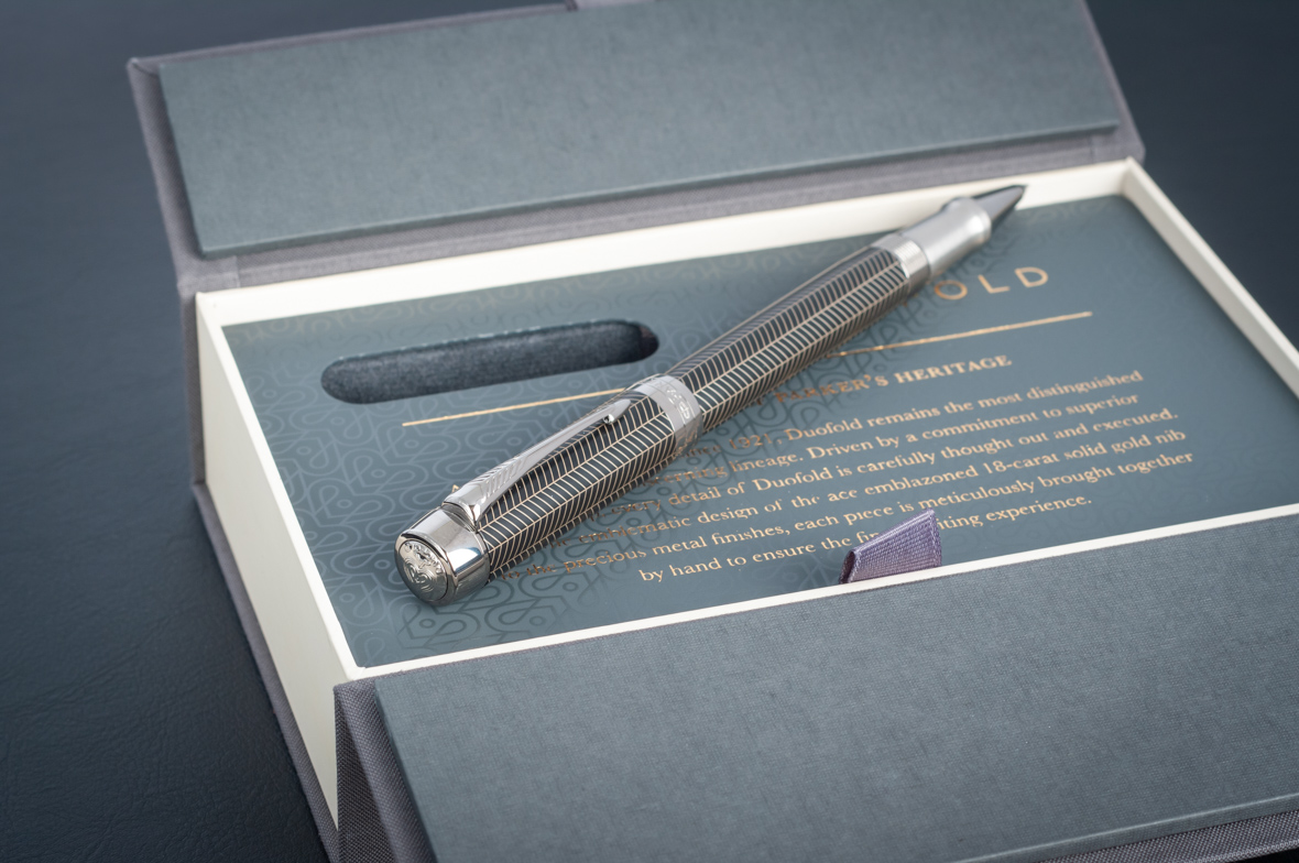 Ручка роллер Parker Duofold Prestige Centennial Black Chevron CT от официального дилера Parker в Курске. Вы можете дополнительно заказать гравировку, которая подчеркнет Вашу оригинальность и придаст памятность статусному подарку. Все ручки Паркер поставляются в фирменном футляре.
